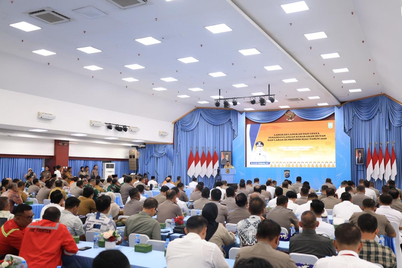 DETEKSI24.COM – PEKANBARU – Polda Riau bersama Forum Koordinasi Pimpinan Daerah (Forkopimda) menggelar Rapat Koordinasi Lintas Sektoral Kebakaran Hutan dan Lahan (Karhutla) Tahun 2026 di Aula Tribrata Mapolda Riau, Senin (27/4/2026), sebagai langkah strategis memperkuat kesiapsiagaan menghadapi ancaman musim kemarau panjang akibat fenomena El Nino.