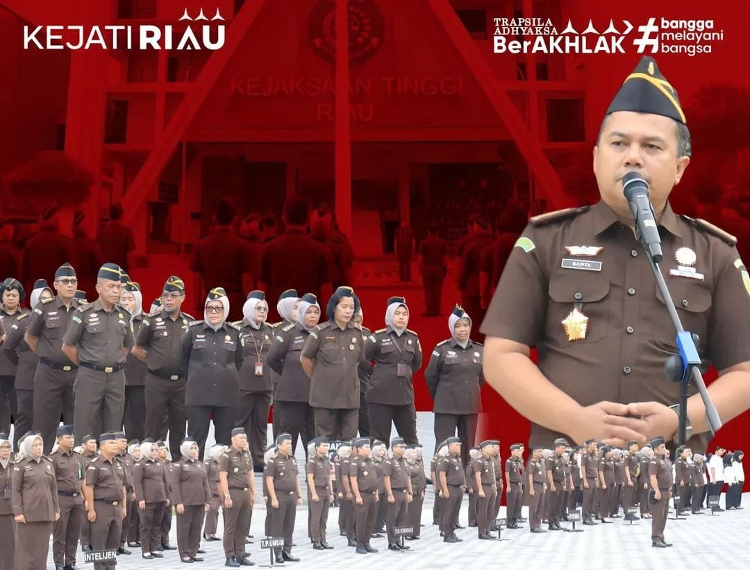 DETEKSI24.com – PEKANBARU – Asintel Kejati Riau Sapta Putra SH., M.Hum., pimpin apel kerja yang diikuti seluruh pegawai di Halaman Kantor, Senin (26/01/2026).