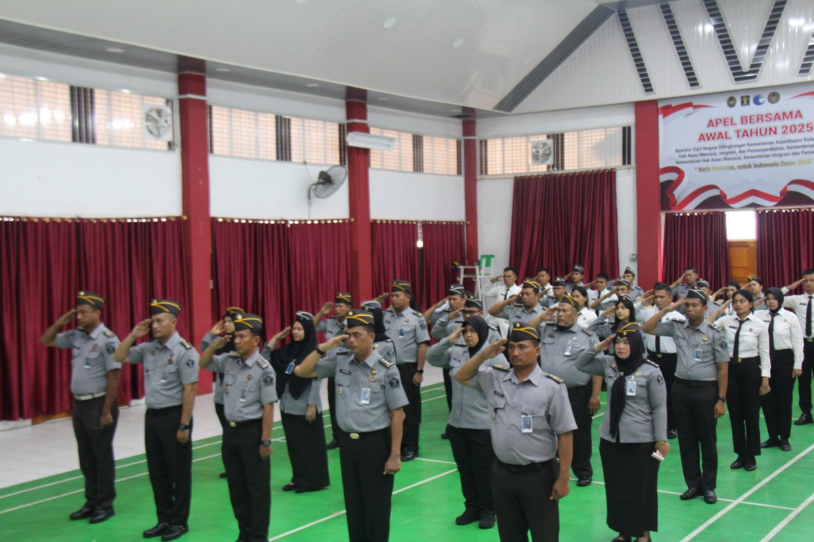DETEKSI24.COM – PEKANBARU – Lembaga Pemasyarakatan (Lapas) Kelas IIA Pekanbaru mengikuti apel pagi bersama pegawai di lingkungan Kementerian Koordinator Bidang Hukum, HAM, Imigrasi, dan Pemasyarakatan secara virtual yang bertempat di Aula Sahardjo Lapas Kelas IIA Pekanbaru, Senin (15/9/2025).