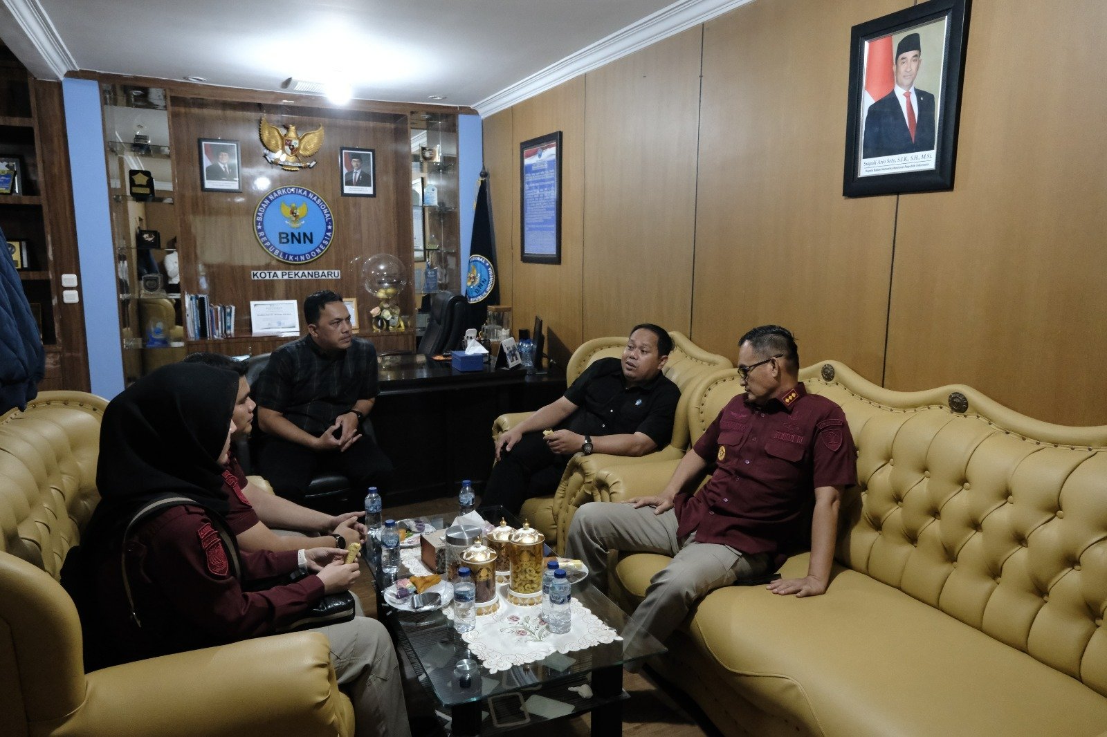 Kunjungan tersebut disambut langsung oleh Kepala BNN Kota Pekanbaru, Kombes Pol. Dr. Wawan, S.H., M.H., dalam suasana hangat dan penuh keakraban.