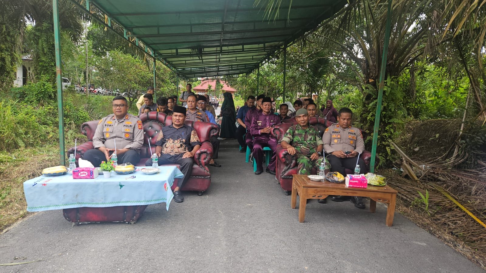 Kegiatan yang digelar sekitar pukul 11.00 WIB ini dihadiri oleh berbagai unsur pimpinan daerah, aparat keamanan, serta tokoh masyarakat. Sekitar 80 orang tampak hadir mengikuti rangkaian acara dari awal hingga selesai.
