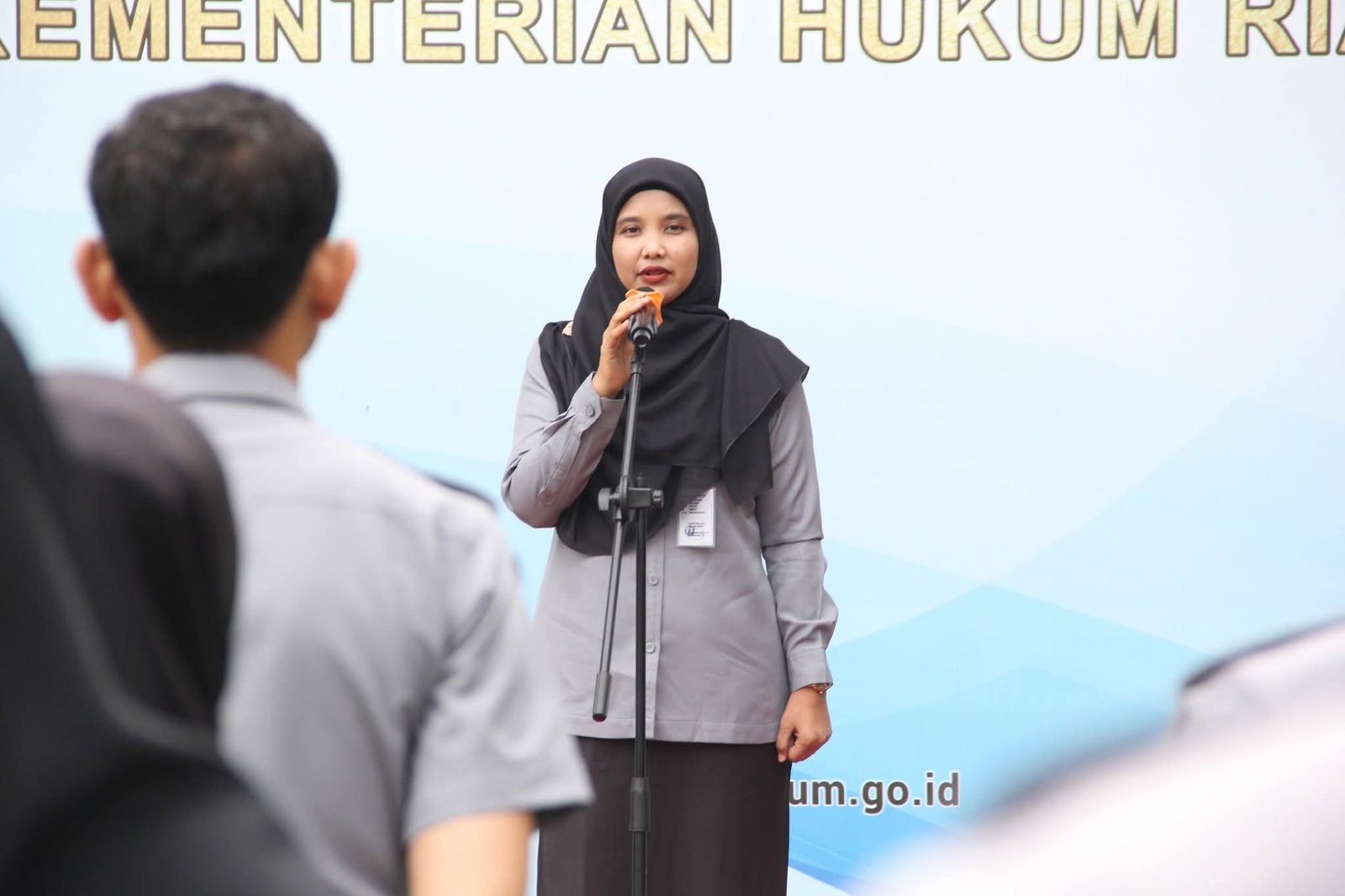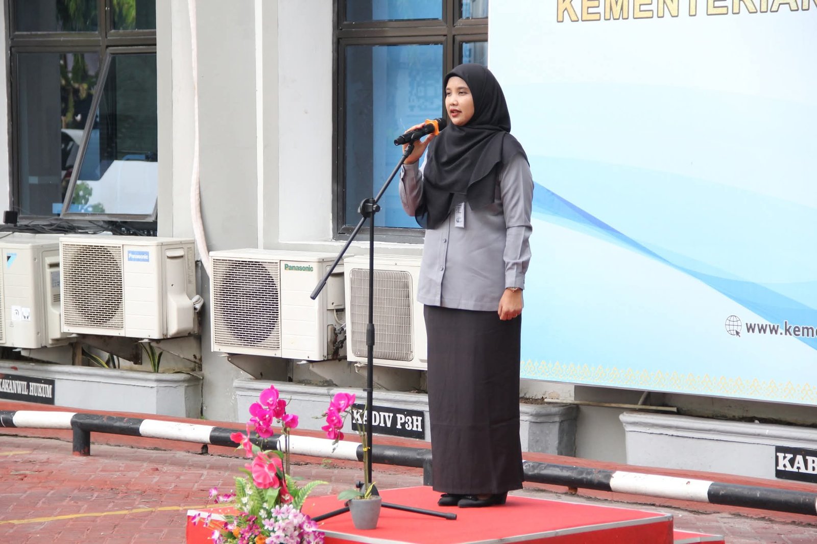 Pada kesempatan ini, Kepala Kantor Wilayah Kementerian Hukum Riau, Rudy Hendra Pakpahan, diwakili oleh Kepala Divisi Peraturan Perundang-undangan dan Pembinaan Hukum (P3H) yang bertindak sebagai Pembina apel.