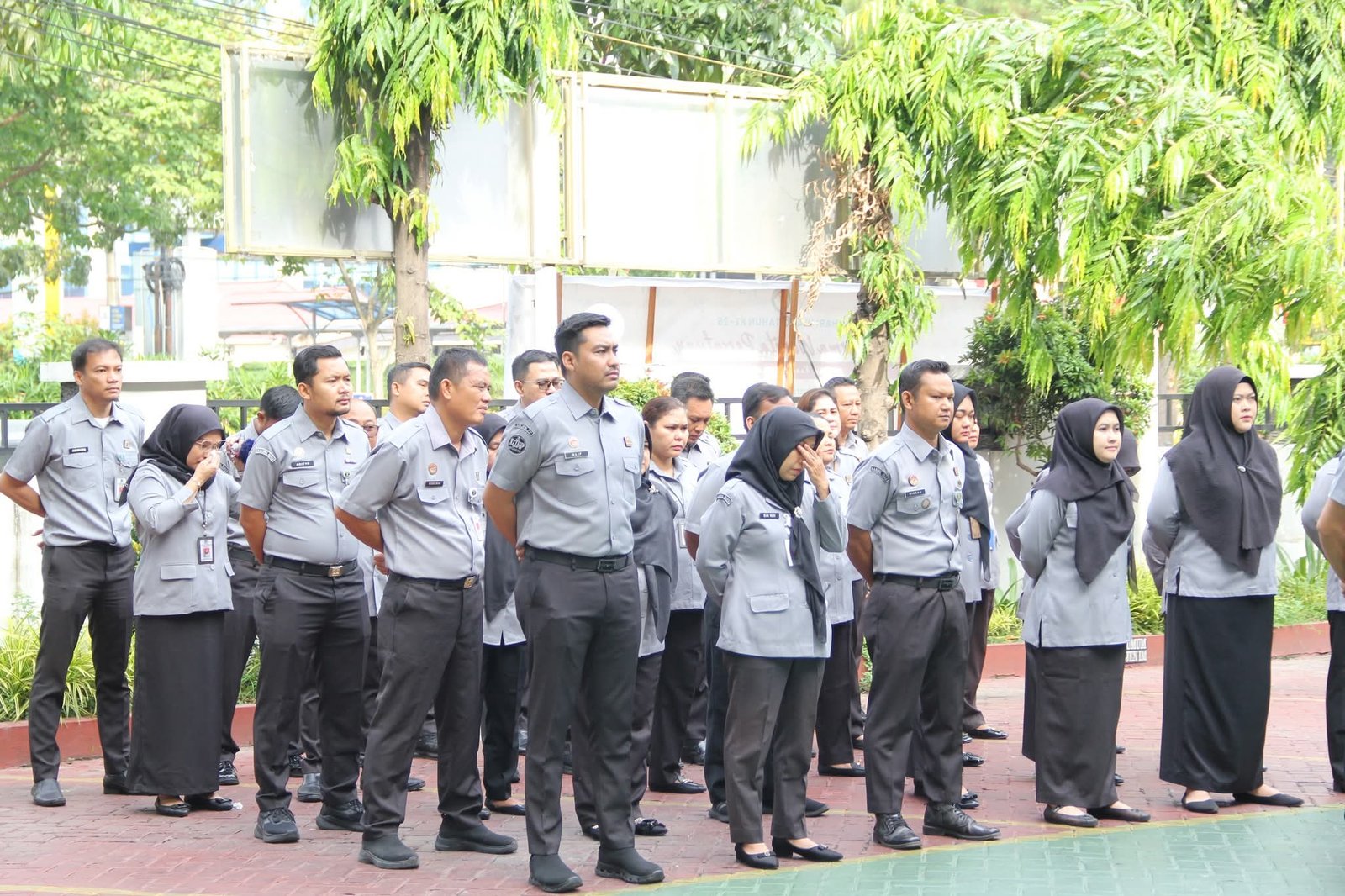 Apel pagi diikuti oleh seluruh jajaran, mulai dari pejabat struktural hingga pejabat fungsional dan pelaksana. Kehadiran lengkap seluruh pegawai mencerminkan komitmen Kanwil Kemenkum Riau dalam memperkuat kedisiplinan, koordinasi, serta soliditas kerja, khususnya menjelang penutupan tahun anggaran.