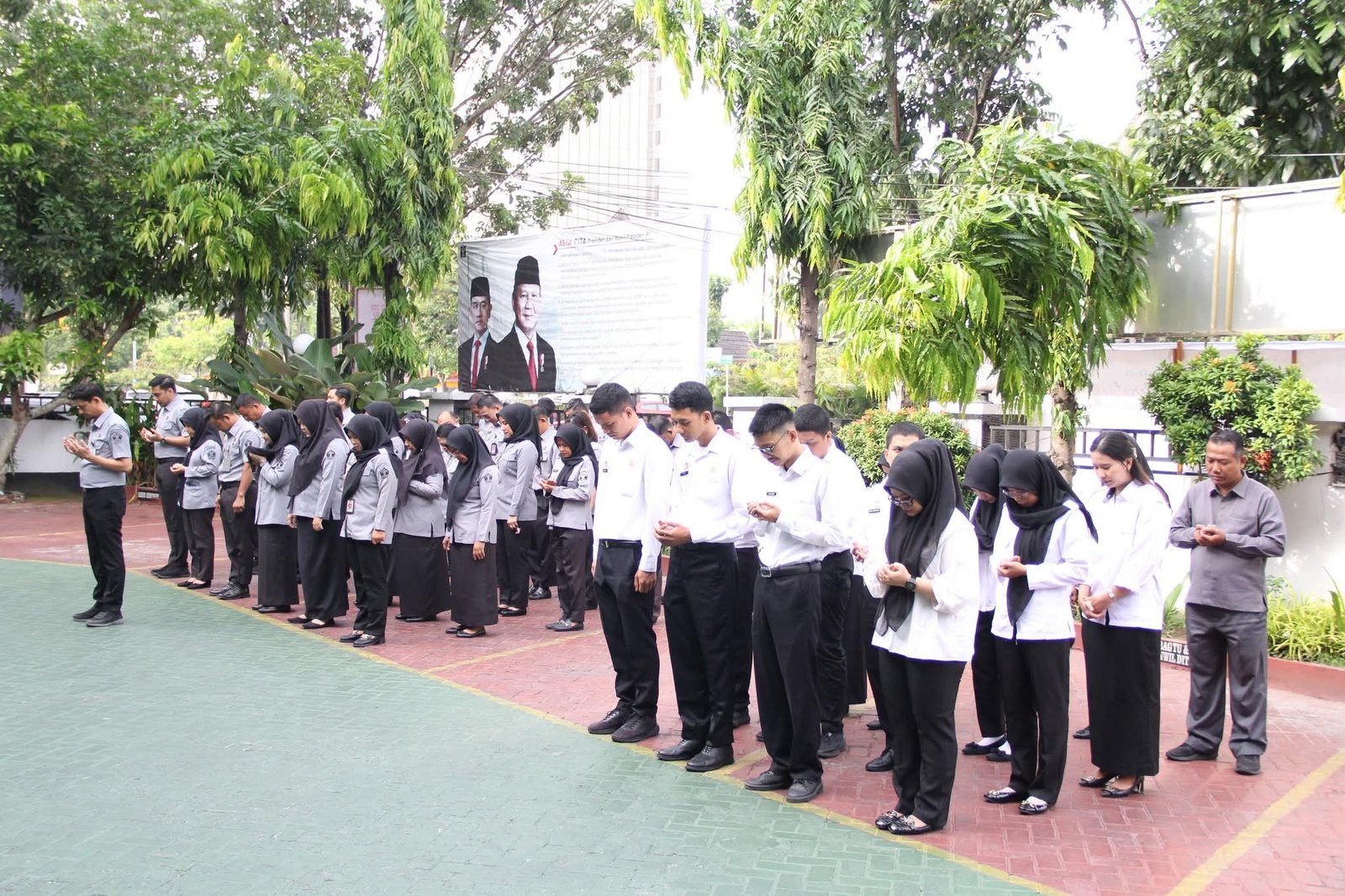 Apel pagi kemudian ditutup dengan pengucapan Tata Nilai Kementerian Hukum Riau dan doa bersama sebagai bentuk penguatan integritas, komitmen, serta semangat pengabdian kepada negara.