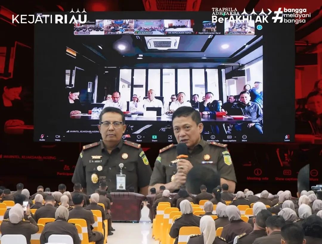 DETEKSI24.com – PEKANBARU – Kajati Sutikno SH., MH., didampingi Wakajati, PJU, serta seluruh pegawai ikuti arahan penggunaan media sosial bagi pegawai Kejaksaan dari JAM Intel secara hybrid di Sasana HM. Prasetyo, Kamis (13/11/2025).