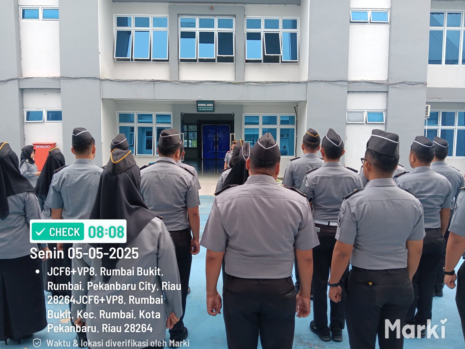 Deteksi24.com – PEKANBARU – Petugas Lembaga Pemasyarakatan Narkotika Kelas IIB Rumbai melaksanakan kegiatan rutin Apel pagi Pegawai di Lapangan Apel Lembaga Pemasyarakatan Narkotika Kelas IIB Rumbai, Senin (5/5/2025).