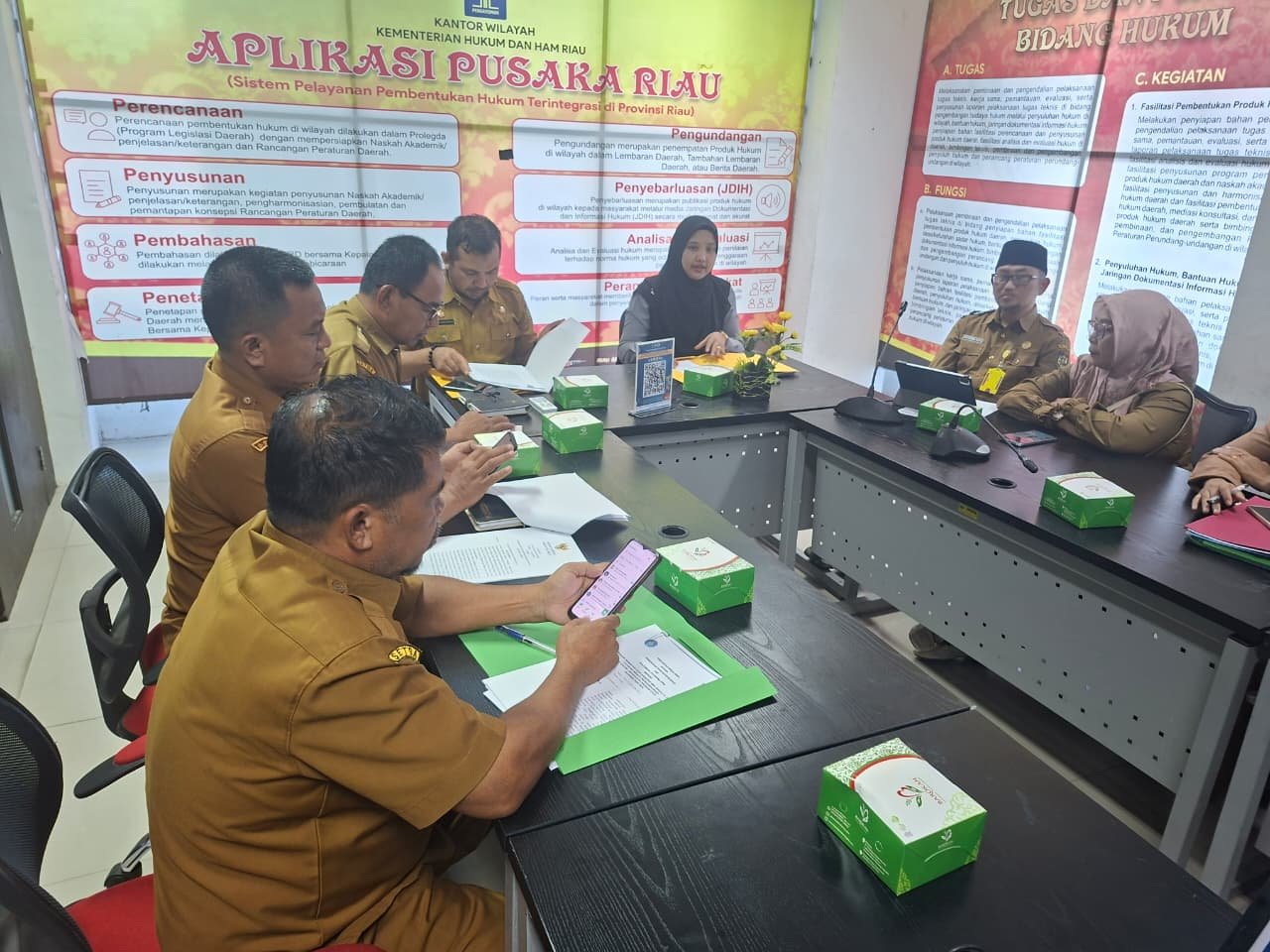 Sementara itu, di Kabupaten Pelalawan, harmonisasi dilakukan terhadap rancangan peraturan bupati tentang Kedudukan, Susunan Organisasi, dan Tata Kerja Dinas Pariwisata, Pemuda, dan Olahraga serta rancangan peraturan bupati tentang Kelas Jabatan Aparatur Sipil Negara di Lingkungan Pemerintah Daerah Kabupaten Pelalawan.