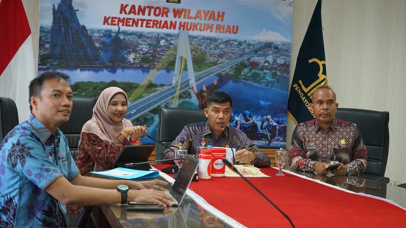 DETEKSI24.COM – PEKANBARU – Berdasarkan Undang-Undang Republik Indonesia Nomor 16 Tahun 2011 Tentang Bantuan Hukum, Kantor Wilayah Kementerian Hukum Riau melakukan Sosialisasi dan Koordinasi Percepatan Pembentukan Pos Bantuan Hukum (POSBANKUM) Desa/Kelurahan Kabupaten Rokan Hulu secara virtual yang dibuka langsung oleh Kepala Kantor Wilayah Kementerian Hukum Riau, Rudy Hendra Pakpahan didampingi oleh Kepala Divisi Peraturan Perundang-Undangan dan Pembinaan Hukum Yeni Nel Ikhwan, bertempat di Ruang rapat Kepala Kantor Wilayah Kementerian Hukum Riau pada hari, Kamis (28/08/2025).