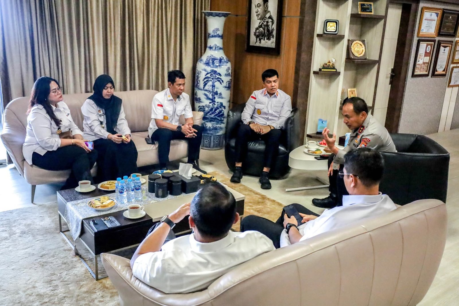 Kedatangan rombongan Kanwil Kemenkum Riau disambut langsung oleh Kepala Polda Riau, Herry Heryawan, beserta jajarannya.