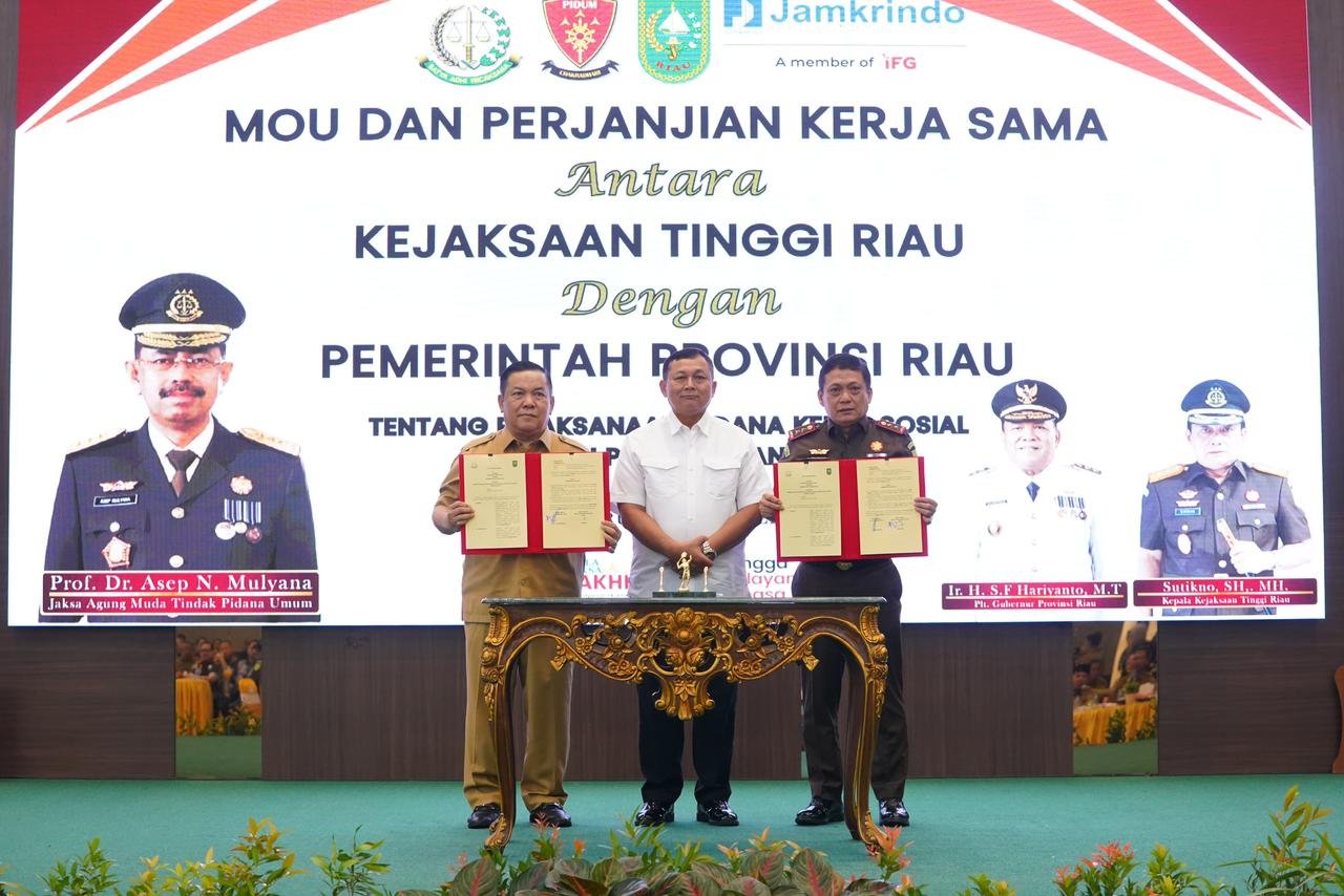 DETEKSI24.com – PEKANBARU – Kejaksaan Tinggi (Kejati) Riau bersama Pemerintah Provinsi (Pemprov) Riau menandatangani Nota Kesepahaman (MoU) dan Perjanjian Kerja Sama (PKS) terkait pelaksanaan pidana kerja sosial bagi pelaku tindak pidana, Selasa (2/12/2025).