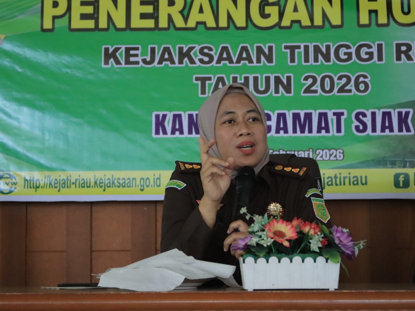 DETEKSI24.COM – PEKANBARU – Kejaksaan Tinggi Riau menggelar kegiatan penerangan hukum (Penkum) program pembinaan masyarakat taat hukum (Binmatkum), bertempat di Kantor Camat Kecamatan Siak, Kabupaten Siak, Provinsi Riau, Rabu (11/02/2026).