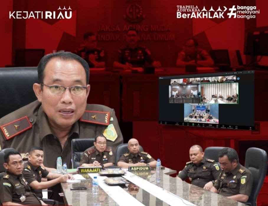 DETEKSI24.com – PEKANBARU – Plt Kajati Riau Dedie Tri Hariyadi SH., MH., didampingi Aspidum beserta jajaran ajukan permohonan RJ terhadap perkara dari Kejari Siak kepada Jampidum melalui Dir C Yudi Indra Gunawan, SH., MH secara daring di Rupat Waka, Selasa (22/09/2025).