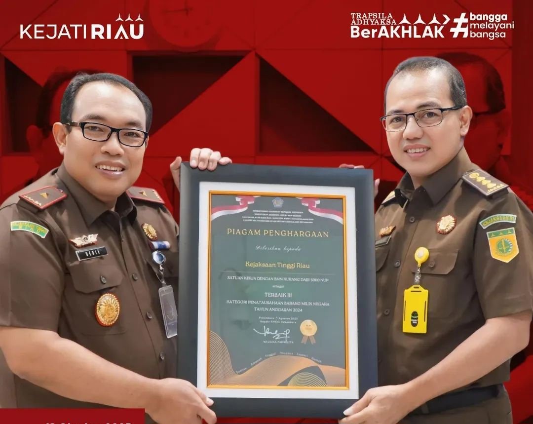 Penghargaan ini menjadi wujud apresiasi atas upaya Kejati Riau dalam mendukung pengelolaan aset negara yang transparan dan berintegritas, serta diharapkan dapat menjadi motivasi untuk terus meningkatkan kinerja dalam pengelolaan BMN di lingkungan Kejati Riau.(*)