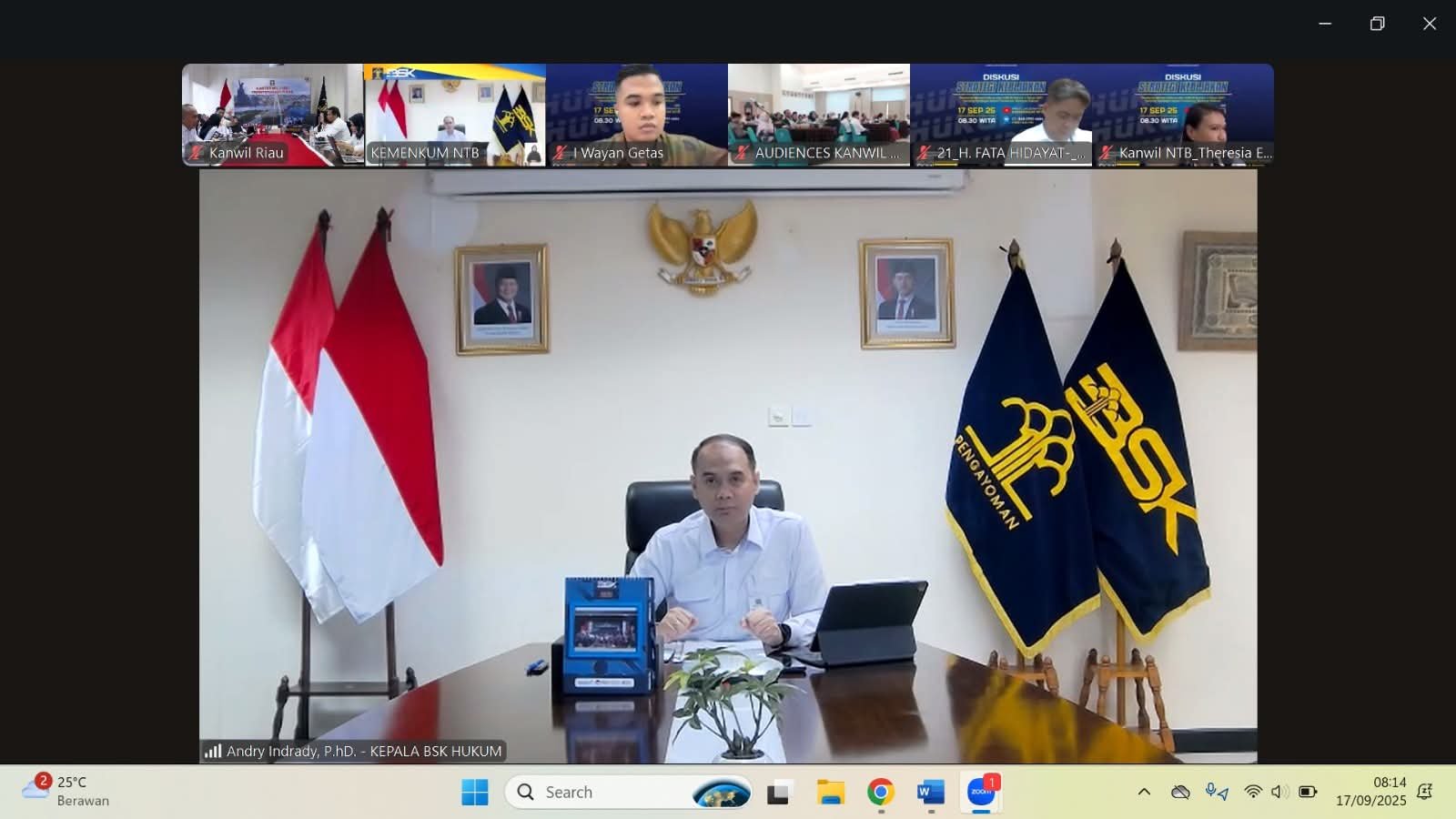 DETEKSI24.com – PEKANBARU – Kantor Wilayah Kementerian Hukum Riau (Kanwil Kemenkum Riau) mengikuti kegiatan diskusi strategi kebijakan yang diselenggarakan secara virtual oleh Kantor Wilayah Kementerian Hukum Nusa Tenggara Barat, Rabu (17/9/2025).