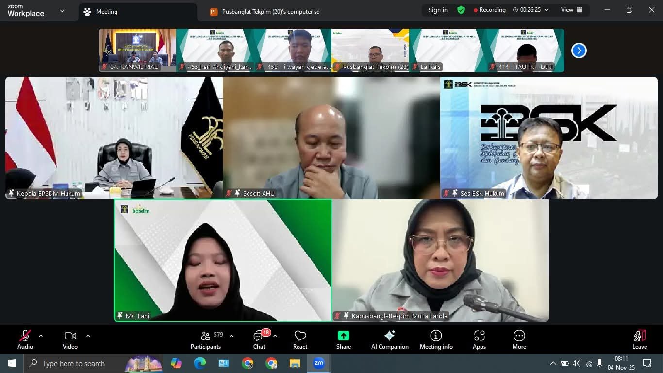 Dalam kesempatan ini, tercatat satu orang PPPK paruh waktu dari Kanwil Kemenkum Riau turut serta dalam kegiatan orientasi tersebut. Peserta mengikuti seluruh rangkaian kegiatan secara tertib dan interaktif, menunjukkan antusiasme tinggi untuk menjadi bagian dari ASN profesional yang berkomitmen terhadap pelayanan publik.