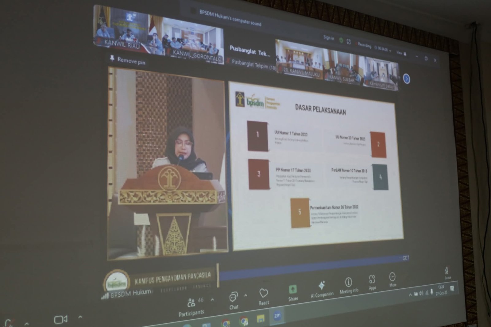 Kepala Divisi Peraturan Perundang-undangan dan Pembinaan Hukum, Yeni Nel Ikhwan tercatat sebagai salah satu peserta aktif dalam pelatihan ini. Kegiatan dibuka langsung oleh Kepala Badan Pengembangan Sumber Daya Manusia Hukum (BPSDM Hukum).