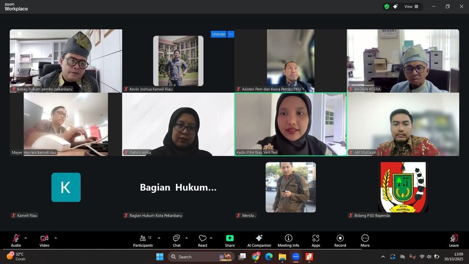 DETEKSI24.com – PEKANBARU – Kantor Wilayah Kementerian Hukum Riau melalui Divisi Peraturan Perundang-undangan dan Pembinaan Hukum (P3H) melaksanakan Rapat Harmonisasi Rancangan Peraturan Wali Kota (Ranperwako) Pekanbaru secara daring pada Kamis (30/10/2025).