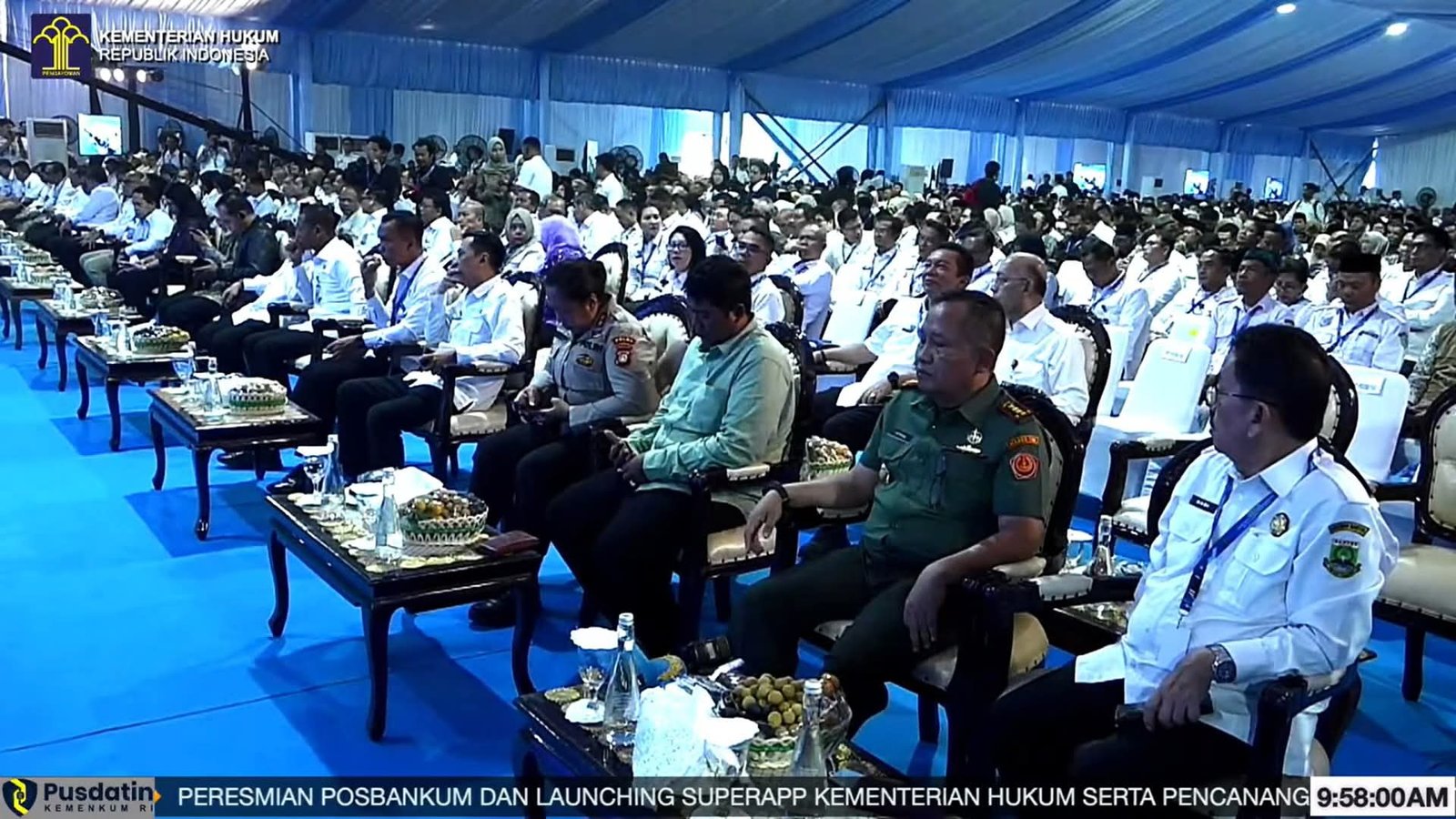 Dalam sambutannya, beliau menekankan pentingnya pemerataan informasi hukum hingga ke level akar rumput serta memperkenalkan inovasi digital terbaru berupa SuperApp Kementerian Hukum bernama “Pasti”.