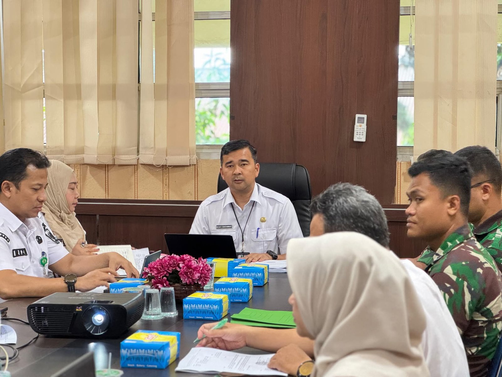 Rapat ini dihadiri oleh perwakilan dari berbagai instansi, antara lain Kesbangpol Provinsi Riau, Lanud RSN, BPBD, BPKAD, Bappeda, DLHK, serta Satpol PP.