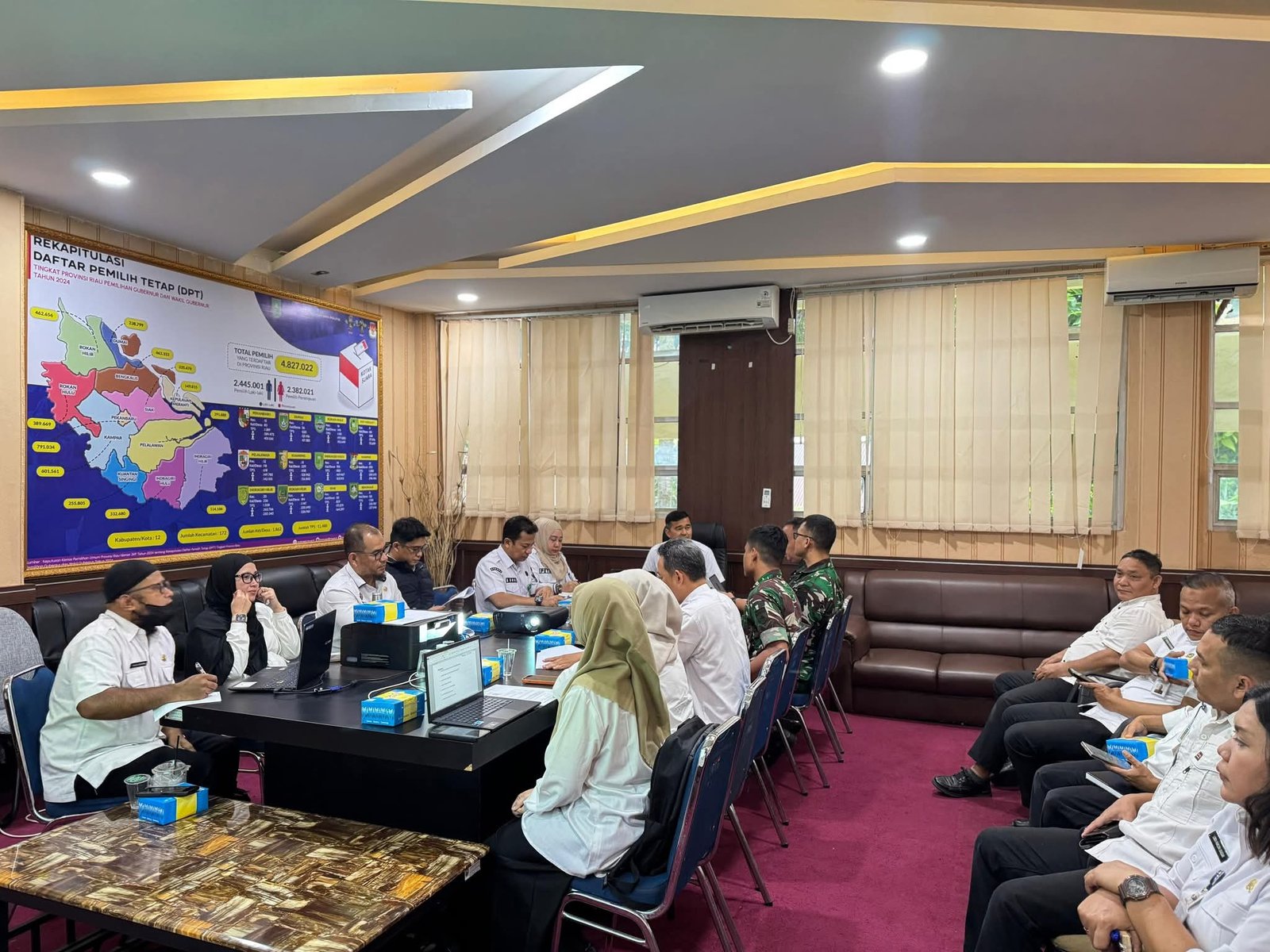DETEKSI24.COM – PEKANBARU – Badan Kesatuan Bangsa dan Politik (Kesbangpol) Provinsi Riau menggelar rapat verifikasi dan konfirmasi proposal serta Rencana Anggaran Biaya (RAB) hibah yang diajukan oleh Lanud Roesmin Nurjadin (RSN), Rabu (22/4/2026).