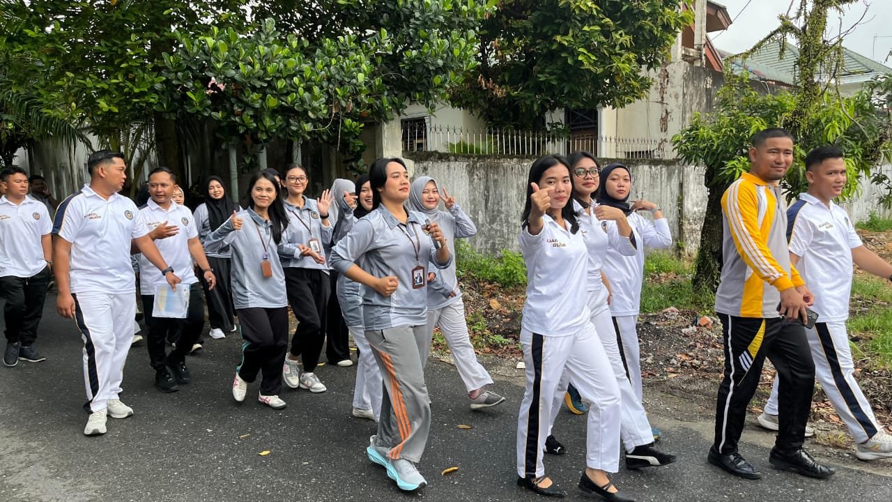 Konsisten Jaga Kebugaran dan Tingkatkan Keakraban Antar Petugas, Lapas Pekanbaru Gelar Giat Jalan Santai