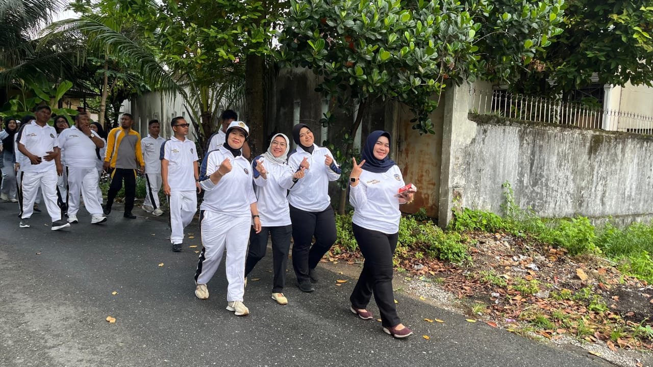Setiap langkah yang diambil memberikan kesempatan bagi pegawai Lapas Pekanbaru untuk saling berinteraksi, bercengkerama, dan mengobrol dengan gembira. Tawa dan cerita mengisi suasana sepanjang perjalanan, menciptakan atmosfer kebersamaan yang begitu hangat.