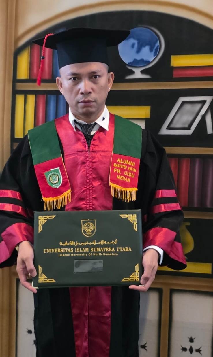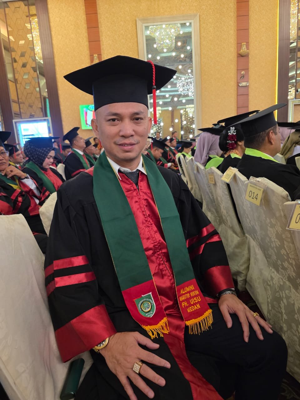 “Dengan rasa syukur hari ini saya resmi menyandang gelar Magister Hukum (S2), hal ini merupakan langkah penting untuk mengembangkan diri, baik dibidang akademik maupun praktik hukum, ” pendidikan ini bukan akhir, tetapi awal untuk memberikan kontribusi nyata dalam penegakan hukum yang berkeadilan, ‘ ujarnya usai prosesi