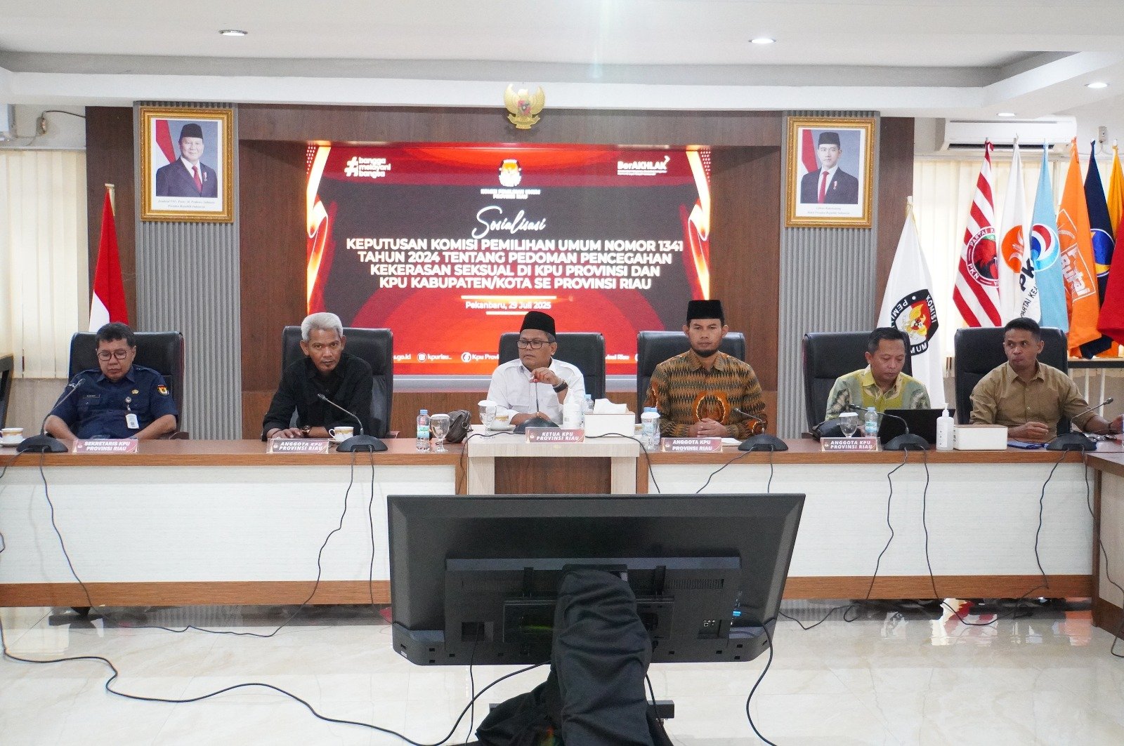 Deteksi24.com – PEKANBARU – Komisi Pemilihan Umum (KPU) Provinsi Riau menyelenggarakan kegiatan Sosialisasi Keputusan Komisi Pemilihan Umum Nomor 1341 Tahun 2024 tentang Pedoman Pencegahan Kekerasan Seksual di Komisi Pemilihan Umum, Komisi Pemilihan Umum Provinsi, dan Komisi Pemilihan Umum Kabupaten/Kota, Selasa (29/7/2025).
