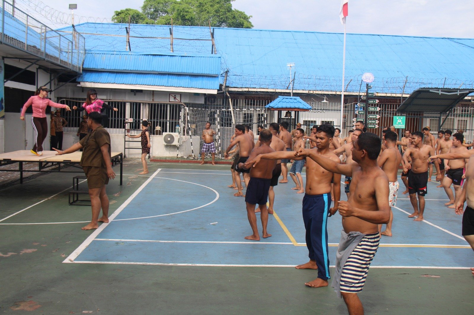 Senam bersama ini berlangsung dengan penuh semangat dan antusiasme. Diiringi musik yang energik, para warga binaan mengikuti gerakan senam yang dipandu oleh instruktur dari luar Lapas yang didampingi oleh Petugas Pemasyarakatan.