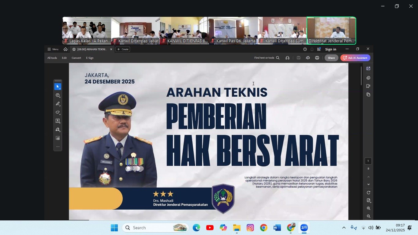 Bertempat di Ruang Rapat Lapas Pekanbaru, rapat diselenggarakan secara daring melalui aplikasi Zoom Meeting dan dibuka langsung oleh Direktur Jenderal Pemasyarakatan, Mashudi, Rabu (24/12/2025).