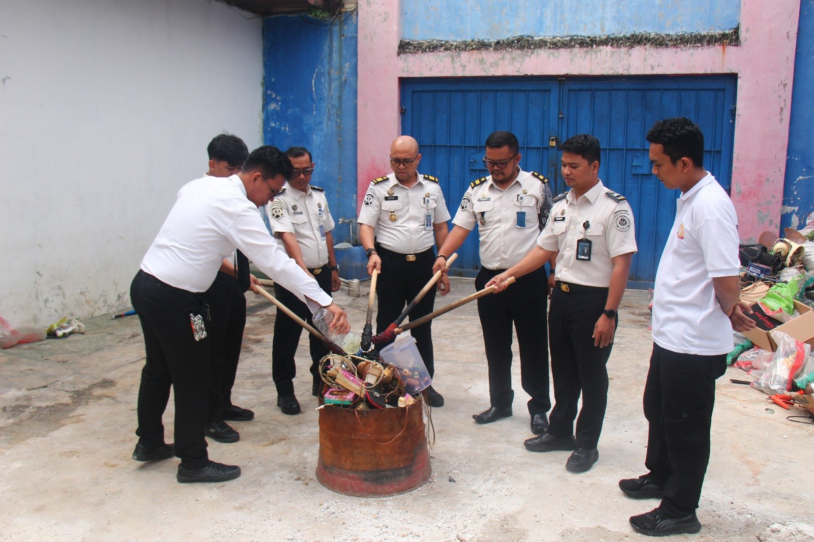 Pemusnahan barang bukti dilakukan terhadap berbagai benda terlarang yang ditemukan saat razia rutin di blok hunian warga binaan, seperti barang-barang yang berpotensi mengganggu stabilitas keamanan dan ketertiban. Seluruh barang bukti dimusnahkan sesuai dengan prosedur yang berlaku guna mencegah penyalahgunaan dikemudian hari.