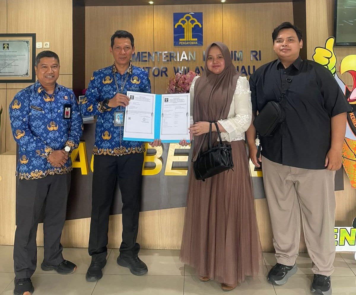 DETEKSI24.com – PEKANBARU – Kantor Wilayah Kementerian Hukum Riau melaksanakan layanan pengurusan dan penyerahan Petikan Resmi Pendaftaran Merek Dagang pada Senin (22/12/2025).