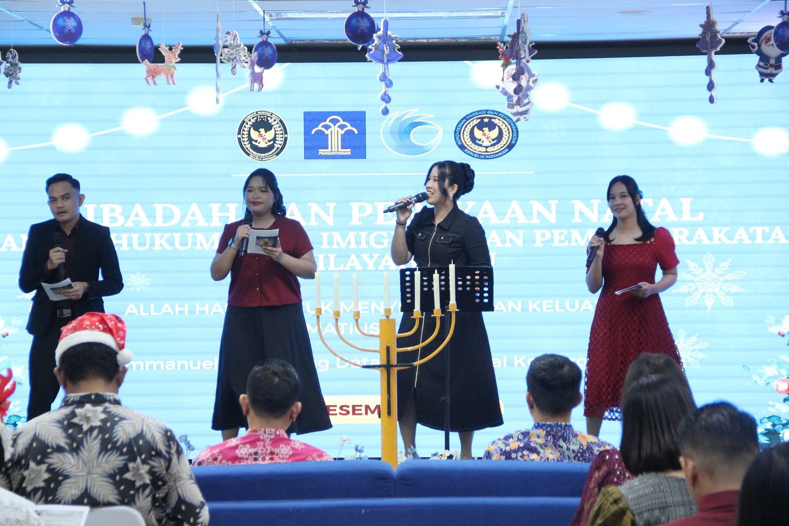 DETEKSI24.com – PEKANBARU – Perayaan Natal Oikumene di lingkungan Kementerian Koordinator Bidang Hukum, Hak Asasi Manusia, Imigrasi dan Pemasyarakatan Tahun 2025 berlangsung khidmat dan penuh kebersamaan di Menara BRI Pekanbaru, Jumat (12/12/2025).