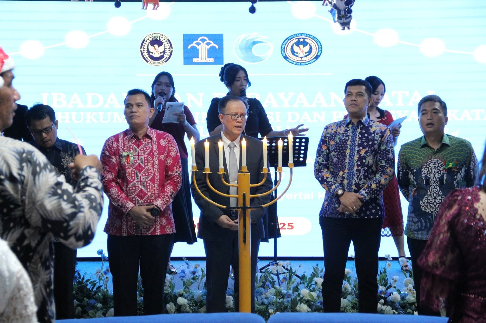 DETEKSI24.com – PEKANBARU – Perayaan Natal Oikumene di lingkungan Kementerian Koordinator Bidang Hukum, Hak Asasi Manusia, Imigrasi dan Pemasyarakatan Tahun 2025 berlangsung khidmat dan penuh kebersamaan di Menara BRI Pekanbaru, Jumat (12/12/2025).
