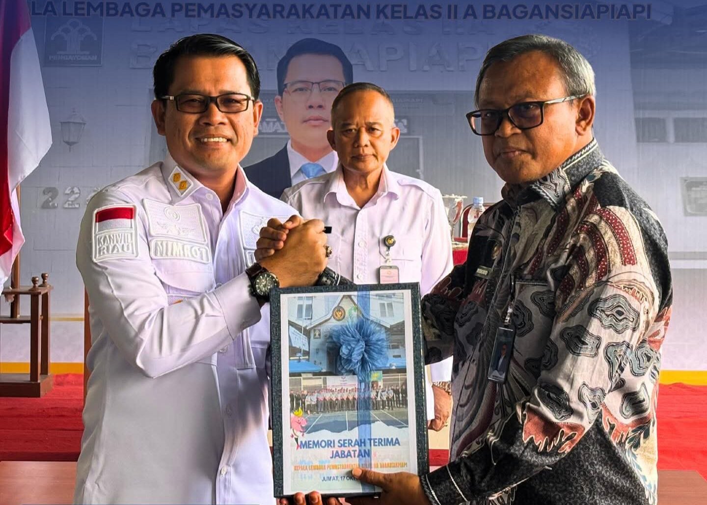 DETEKSI24.com – PEKANBARU – Kantor Wilayah Direktorat Jenderal Pemasyarakatan (Kanwil Ditjenpas) Riau menghadiri kegiatan Serah Terima Jabatan (Sertijab) Kepala Lembaga Pemasyarakatan (Lapas) Kelas IIA Bagansiapiapi dari Asih Widodo kepada Nimrot Sihotang, yang kini menjabat sebagai Pelaksana Tugas (Plt.) Kepala Lapas Bagansiapiapi, pada Jumat (17/10/2025).