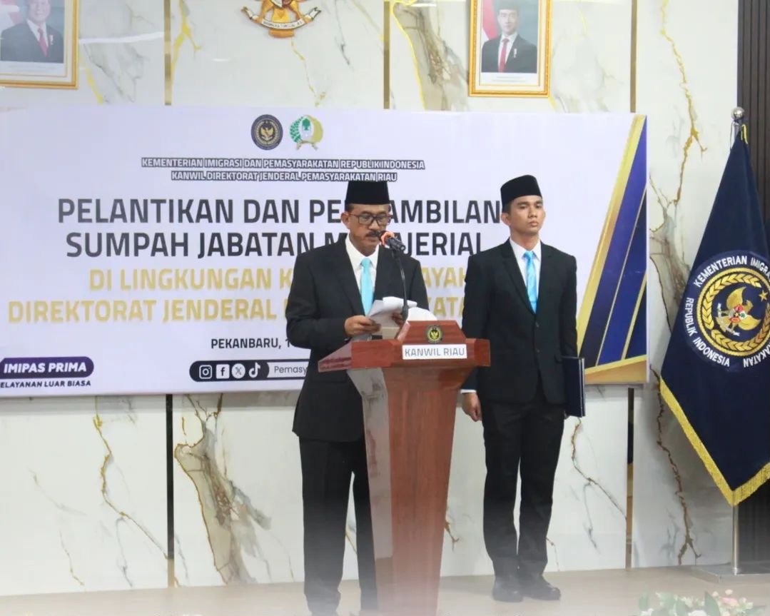 Kegiatan ini dipimpin langsung oleh Kepala Kantor Wilayah Direktorat Jenderal Pemasyarakatan Riau, Maizar, serta dihadiri oleh para pejabat struktural, Kepala Unit Pelaksana Teknis Pemasyarakatan, rohaniawan, serta para pejabat yang dilantik beserta pendamping, Sabtu (11/04/2026).