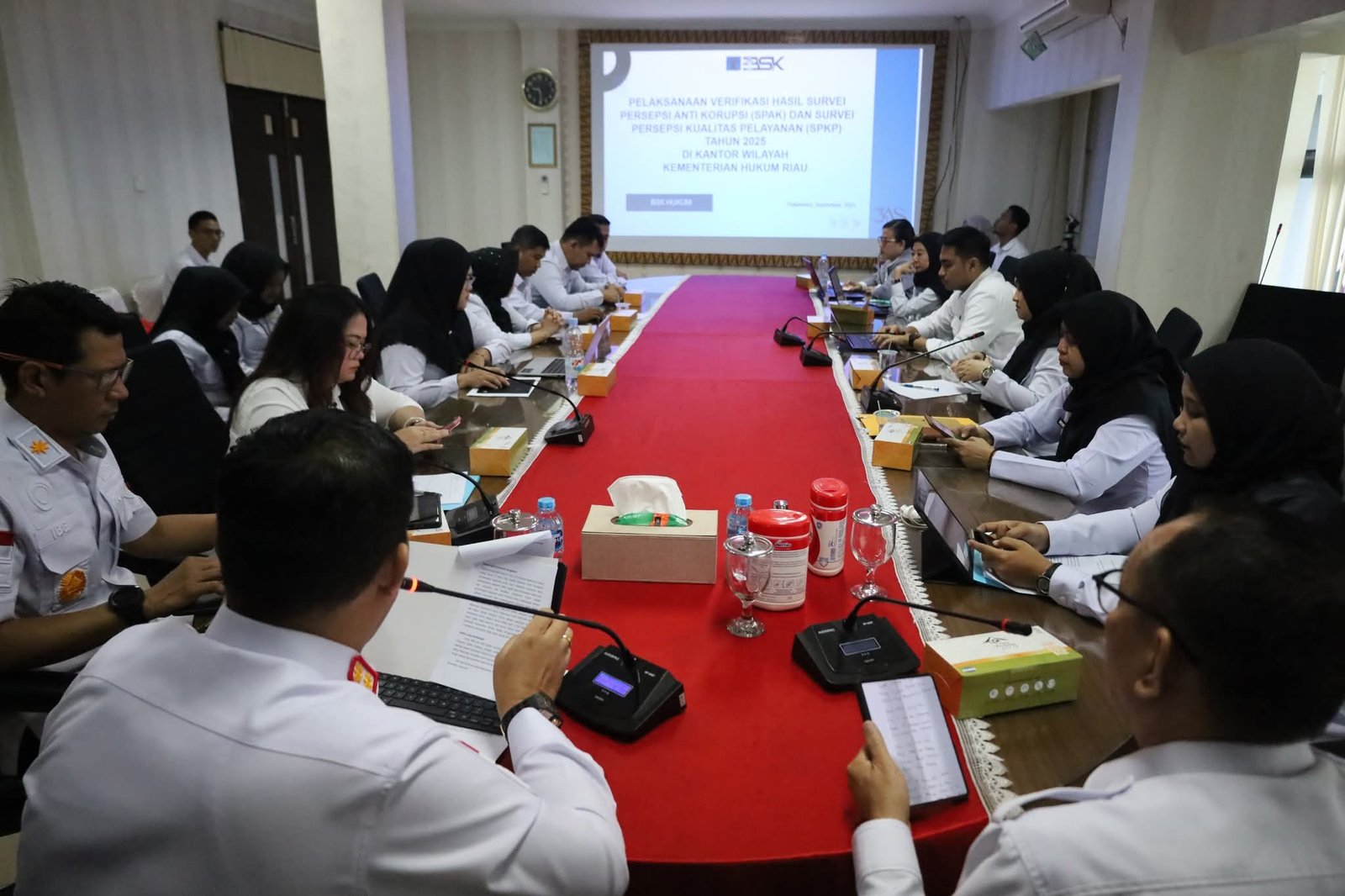 DETEKSI24.com – PEKANBARU – Kantor Wilayah Kementerian Hukum Riau (Kanwil Kemenkum Riau) menerima kunjungan tim verifikator dari Pusat Strategi Kebijakan Pelayanan Hukum (BSK) Kementerian Hukum dalam agenda pendampingan survei SPAK-SPKP.