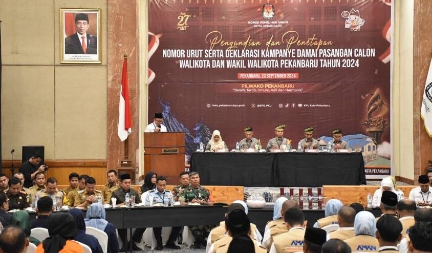 Acara yang diselenggarakan oleh Komisi Pemilihan Umum (KPU) Pekanbaru ini menjadi momen bersejarah bagi semua pasangan calon, yang siap memulai tahap kampanye menuju pemilihan kepala daerah yang akan digelar pada 27 November mendatang. Dalam kesempatan ini, Penjabat (Pj) Wali Kota Pekanbaru, Risnandar Mahiwa, juga menyaksikan langsung proses pengundian tersebut.