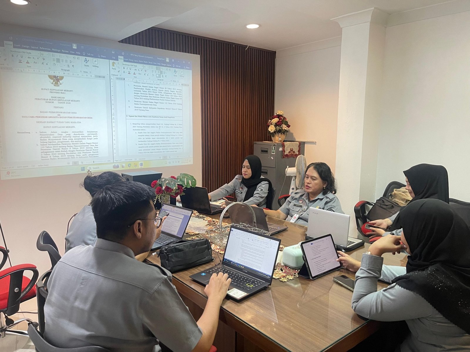 Sementara dari Kabupaten Kepulauan Meranti, dilakukan pra-harmonisasi terhadap Ranperbup tentang Sistem Klasifikasi Keamanan dan Akses Arsip Dinamis serta Ranperbup tentang Badan Permusyawaratan Desa.