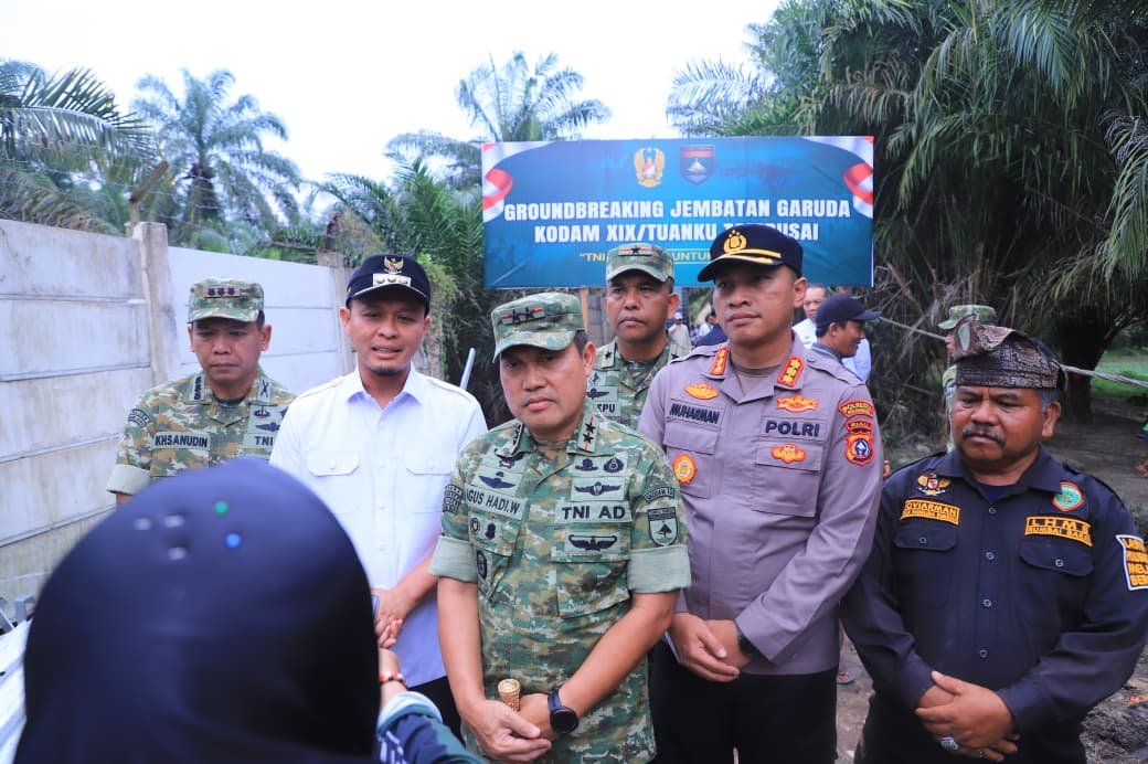 DETEKSI24.COM – PEKANBARU – Polresta Pekanbaru melaksanakan pengamanan kegiatan Peresmian/Peletakan Batu Pertama (Ground Breaking) Jembatan Garuda Kodam XIX/Tuanku Tambusai yang berlangsung di Jalan Kurnia Ujung, RT 05 RW 05, Kelurahan Agrowisata, Kecamatan Rumbai Barat, Jumat (27/03/2026)Kegiatan tersebut dihadiri oleh Pangdam XIX/Tuanku Tambusai Mayjen TNI Dr. Agus Hadi Waluyo, S.A.P., M.M., CHRMP, Danrem 031/WB Brigjen TNI A.S. Sitepu, Kapolresta Pekanbaru Kombes Pol Muharman Arta, S.I.K., M.H., Walikota Pekanbaru Agung Nugroho, serta unsur Forkopimda dan masyarakat setempat.