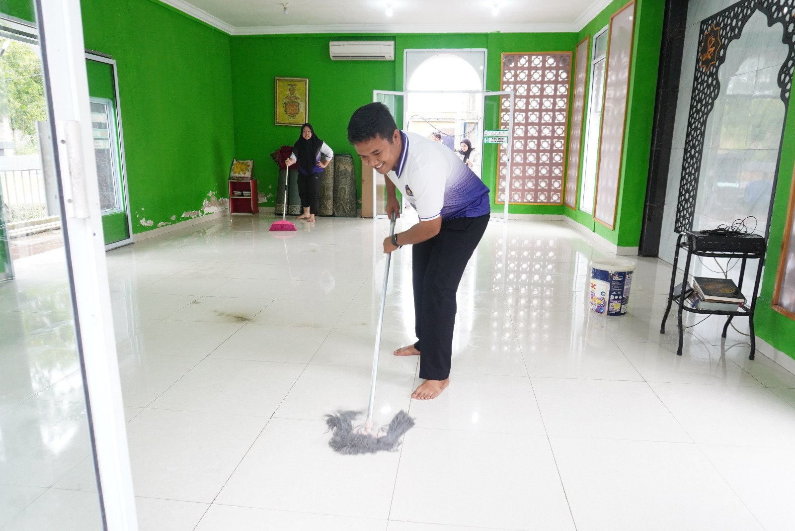 Kerja bakti tersebut meliputi pembersihan area dalam dan luar masjid, seperti menyapu, mengepel lantai, membersihkan tempat wudhu, merapikan halaman, hingga memastikan sarana ibadah dalam kondisi bersih dan nyaman digunakan. Semangat gotong royong tampak jelas dari kolaborasi antara petugas dan warga binaan yang bekerja bersama dengan penuh antusias.