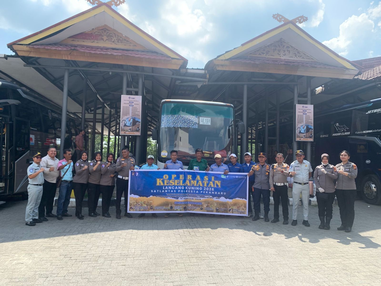 Kegiatan yang berlangsung di Terminal Bandar Raya Payung Sekaki, Jalan Air Hitam, Pekanbaru ini dipimpin langsung oleh Kasat Lantas Polresta Pekanbaru AKP Satrio B.W. Wicaksana, S.I.K., M.H., didampingi Wakasat Lantas, Kanit Kamsel, personel Unit Kamsel, serta bersinergi dengan personel Dinas Perhubungan, Jasa Raharja, dan Dokkes.
