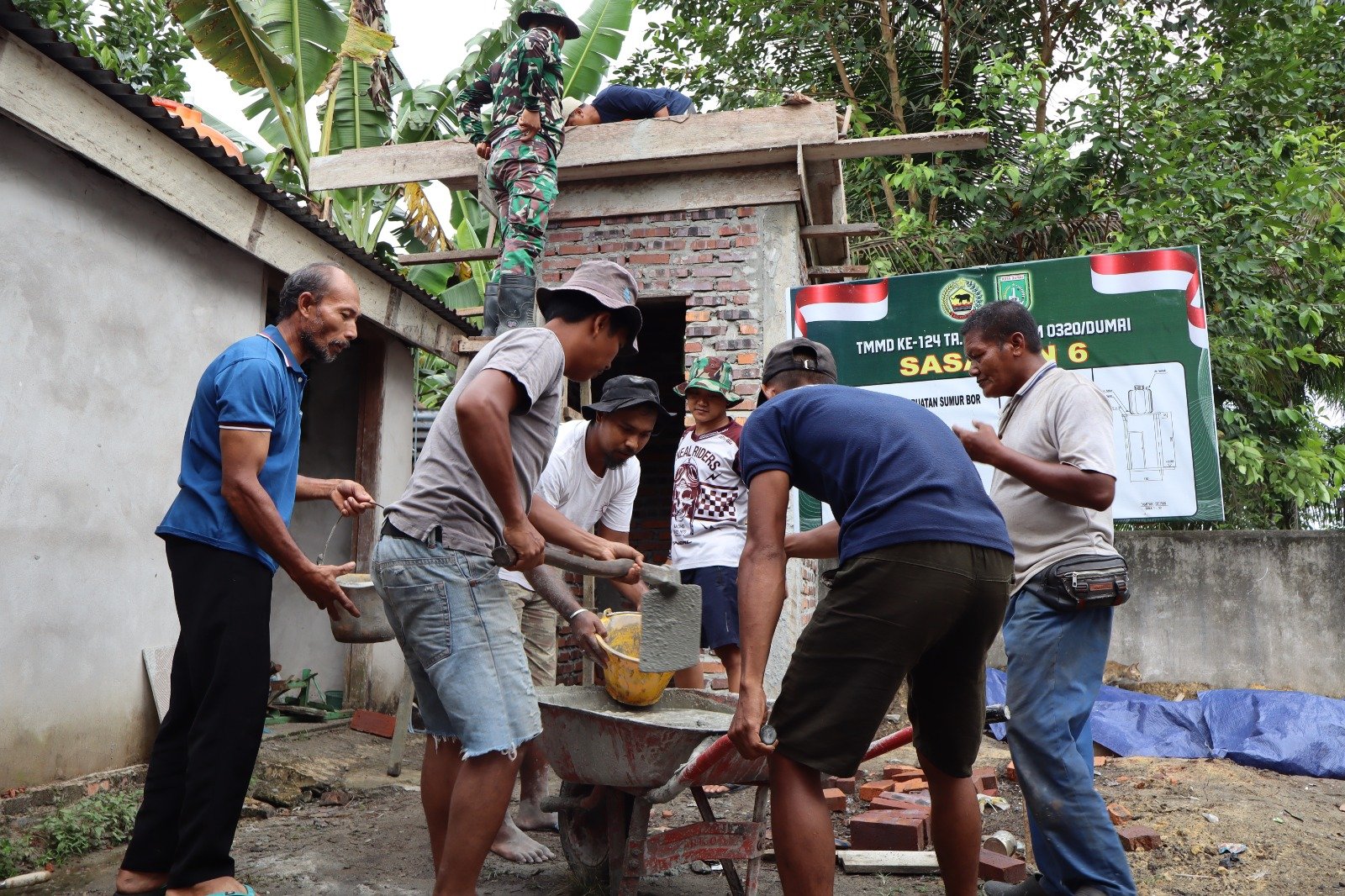 Lebih lanjut, disampaikan bahwa progres ini meliputi pembongkaran bagian rumah yang rusak hingga pemasangan tiang penyangga baru. Partisipasi aktif dari masyarakat setempat juga menjadi faktor penting dalam kelancaran program TMMD ke-124 ini. Gotong royong dan semangat kebersamaan antara TNI dan warga Kelurahan Bukit Kayu Kapur terlihat jelas di lokasi pengerjaan.