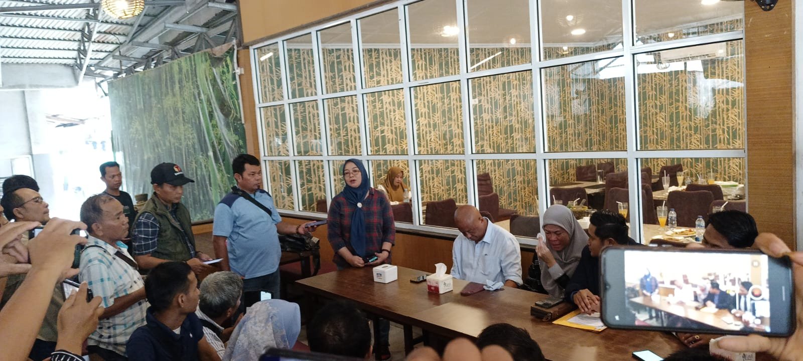 Weni Mulyono didampingi kuasa hukumnya tidak bisa menahan tangisnya saat memberikan keterangan kepada wartawan tentang anaknya yang trauma akibat tindak aniaya, Rabu (22/1/2025)