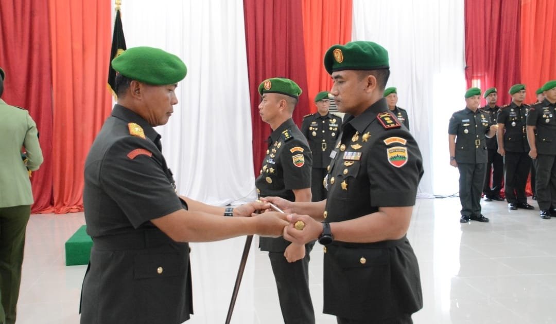 Dalam suasana khidmat, rangkaian upacara Sertijab dilaksanakan dengan penuh makna, ditandai dengan prosesi penciuman Dhuaja Korem 031/Wira Bima oleh Dandim lama dan Dandim baru, serta penyerahan Tongkat Komando secara langsung dari Danrem 031/WB kepada pejabat baru sebagai simbol pengalihan tanggung jawab dan amanah kepemimpinan.