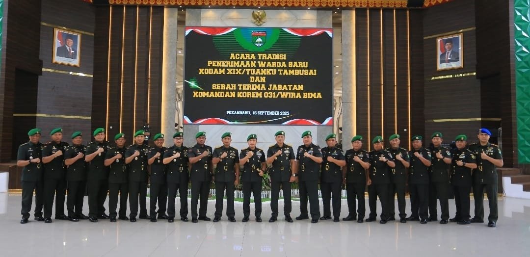 DETEKSI24.com – PEKANBARU – Suasana penuh khidmat dan kebersamaan mewarnai Acara Tradisi Penerimaan Warga Baru Kodam XIX/Tuanku Tambusai sekaligus Serah Terima Jabatan Komandan Korem 031/Wira Bima. Kegiatan berlangsung sekira pukul 10.00 WIB di Gedung Kaharudin Nasution Makodam XIX/TT, Jl. Mayor Ali Rasid, Kota Pekanbaru, Selasa (16/9/2025).